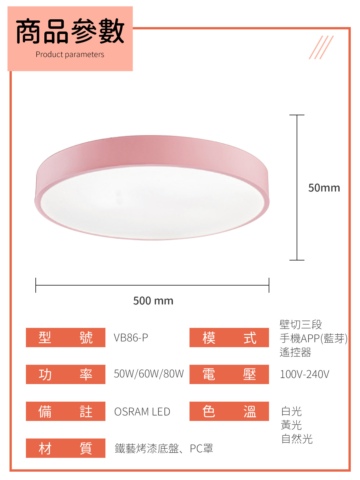〔模式〕三段壁切、手機APP調光調色、遙控器