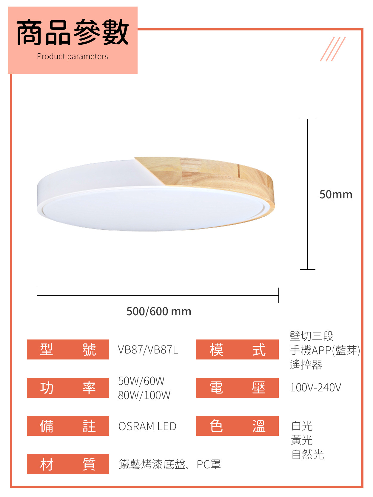 〔模式〕三段壁切、手機APP調光調色、遙控器