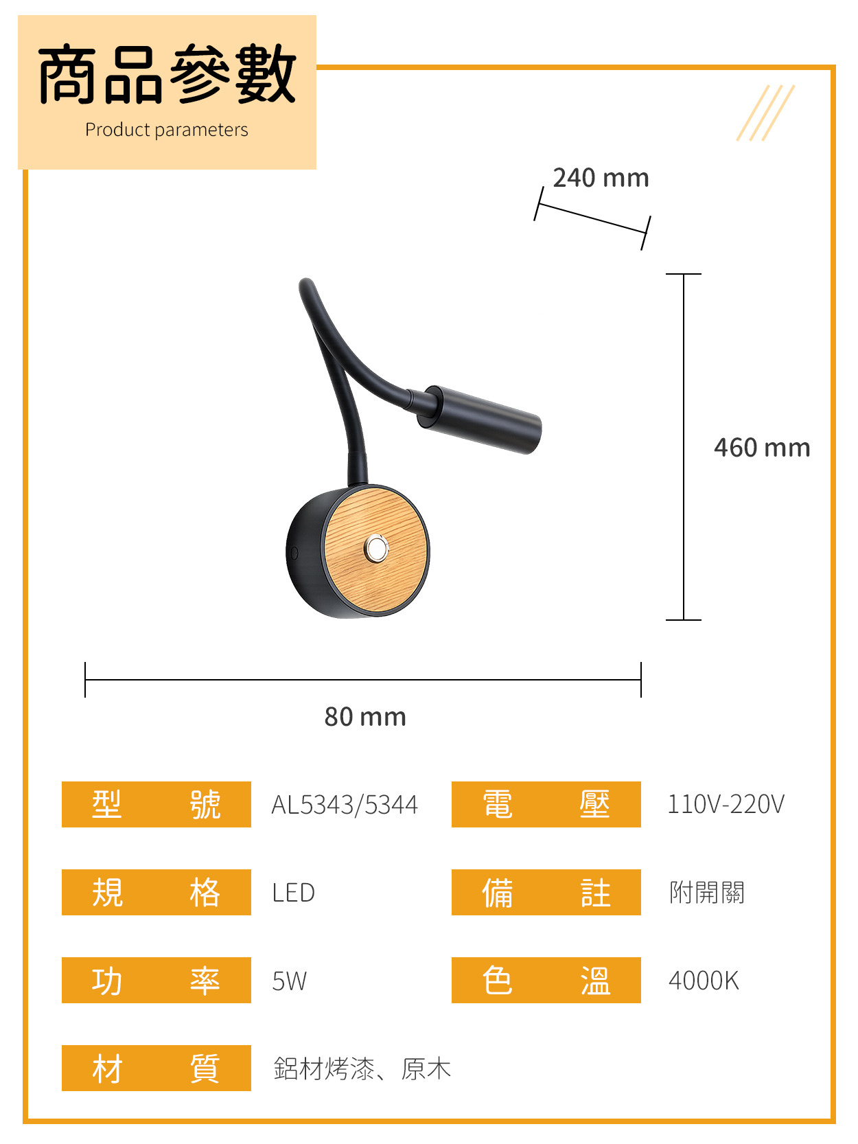 5W|可調角床頭閱讀燈 亞5343