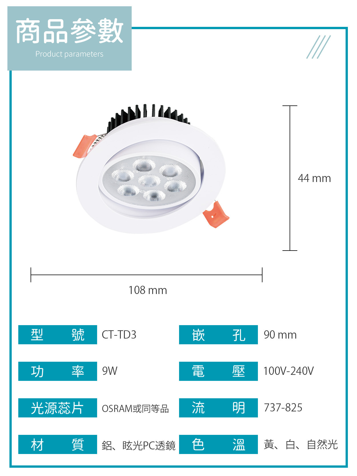 LED-9W 9.0公分可調角崁燈 CTTD3