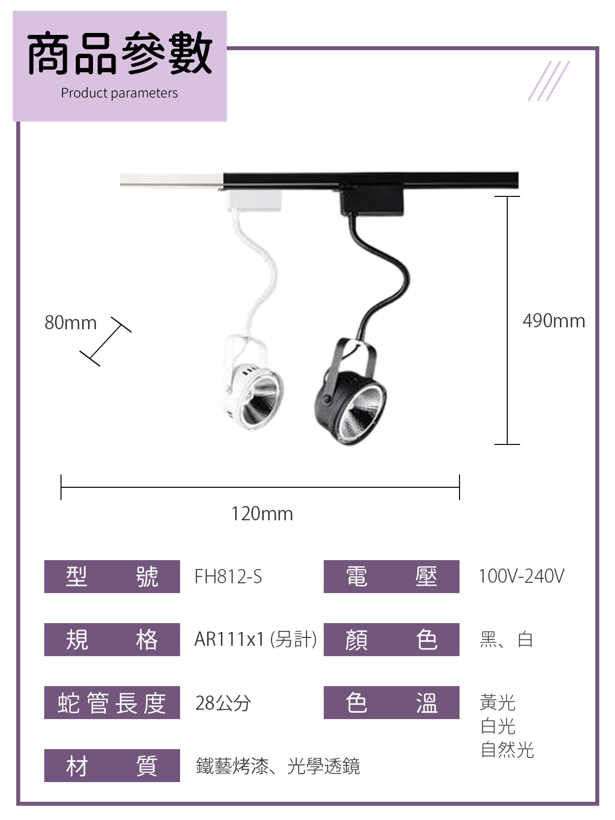 AR111|軟管軌道投射蛇燈 FH812-S