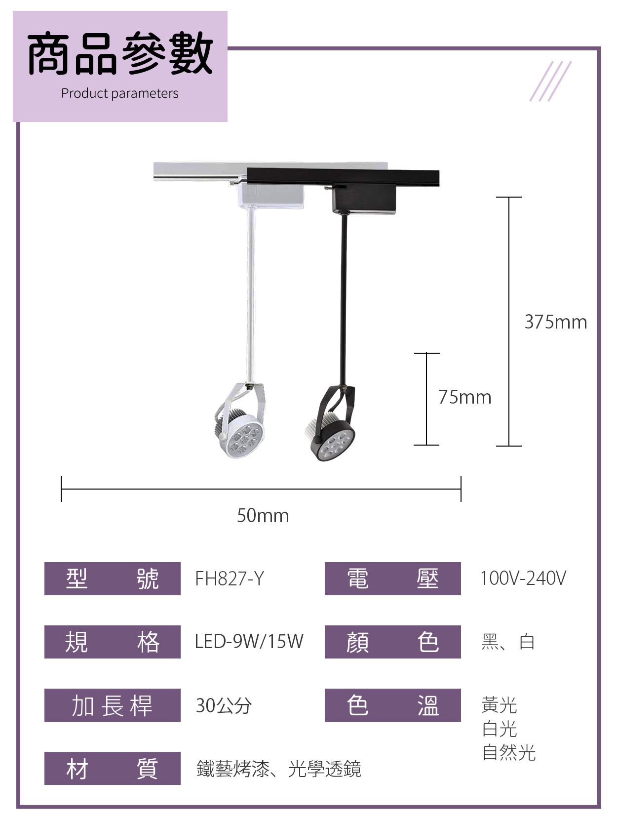 AR70|加長桿軌道投射燈 FH827-Y