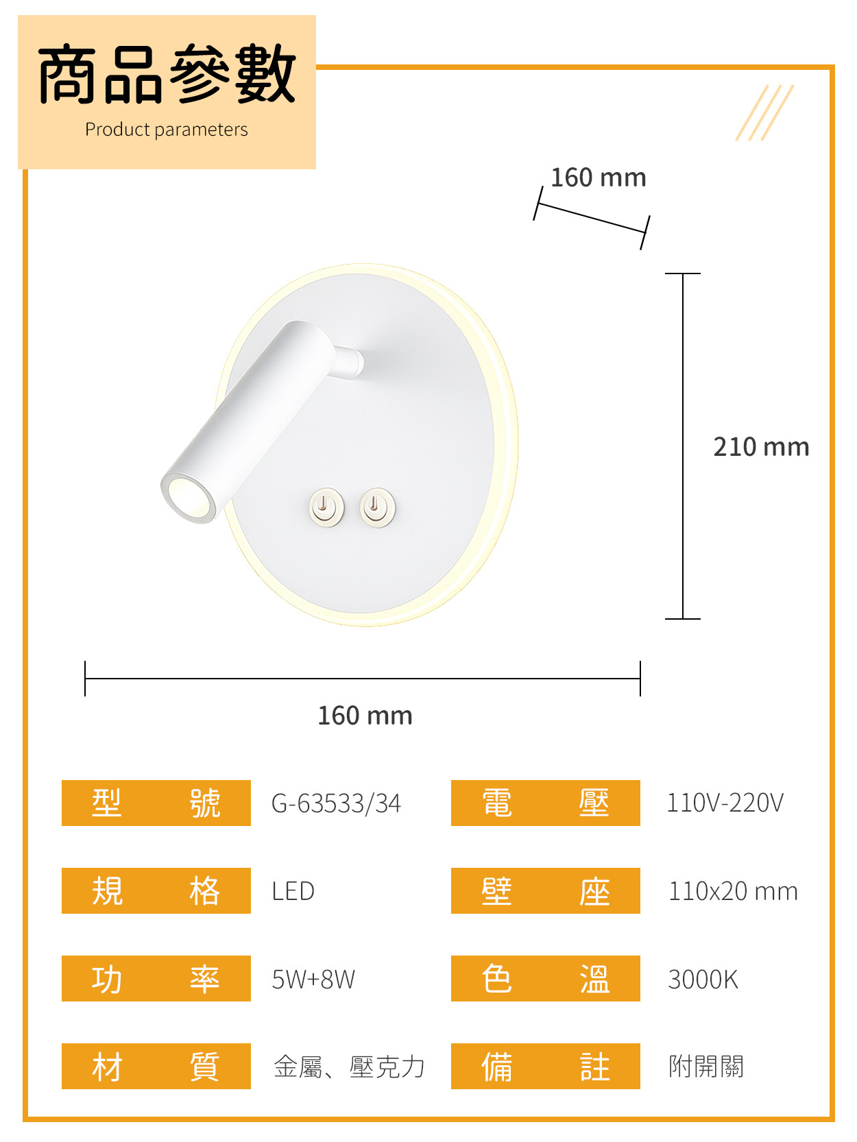 13W|可調式床頭閱讀燈 G6-3533