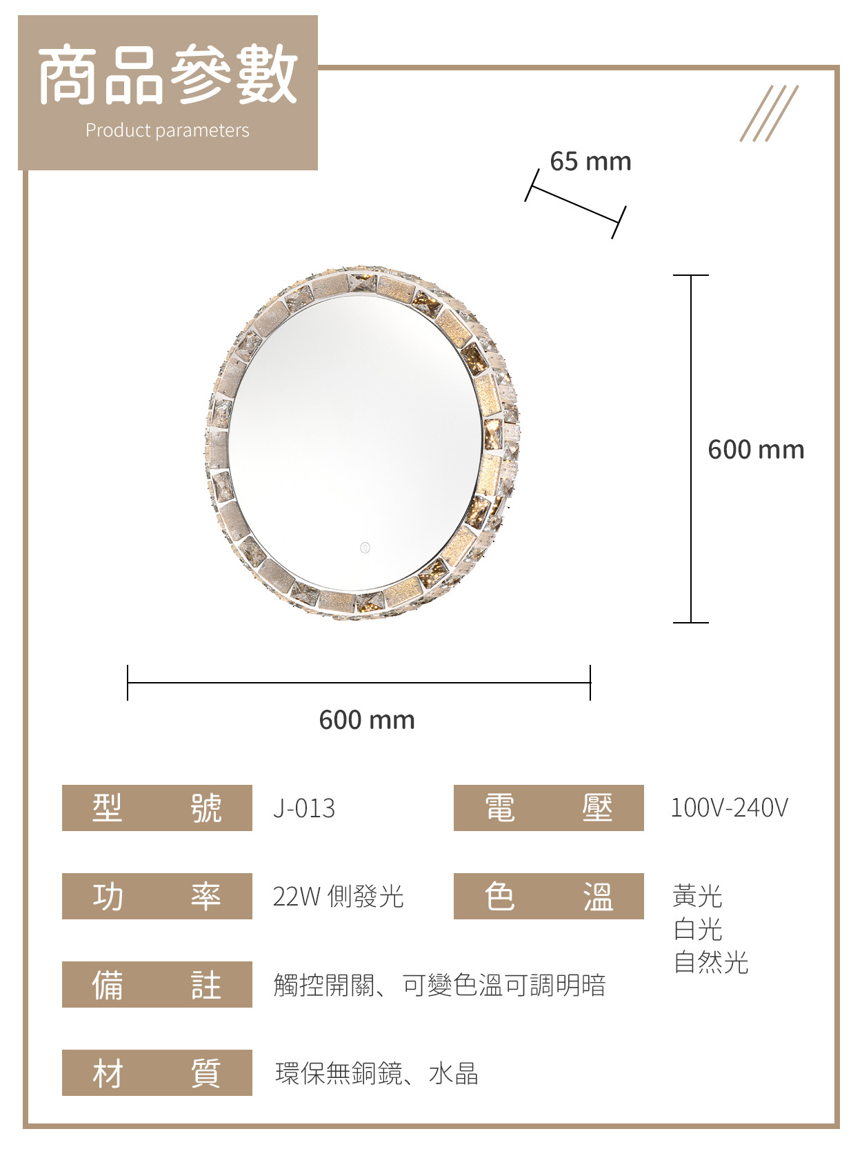 22W|觸控型環保無銅鏡燈 J-013