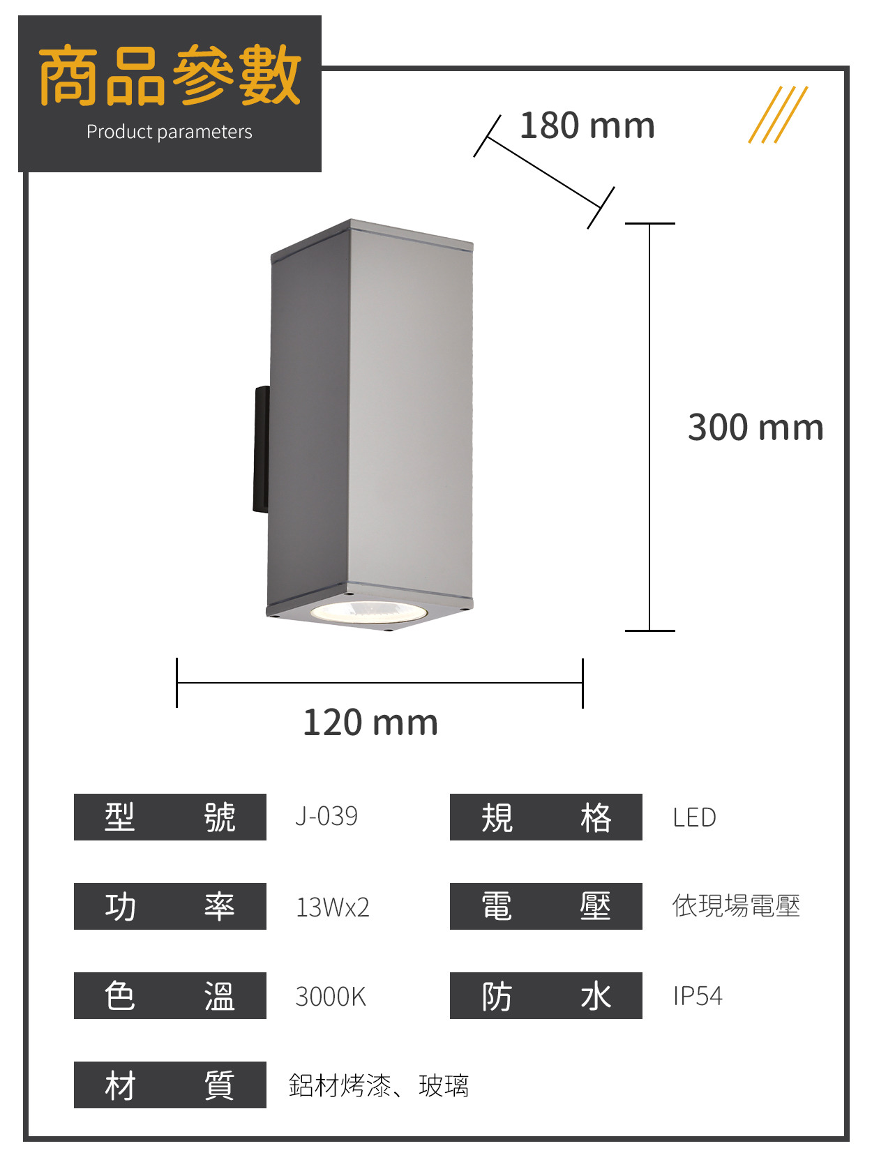 13W|戶外防水造景壁燈 J-039
