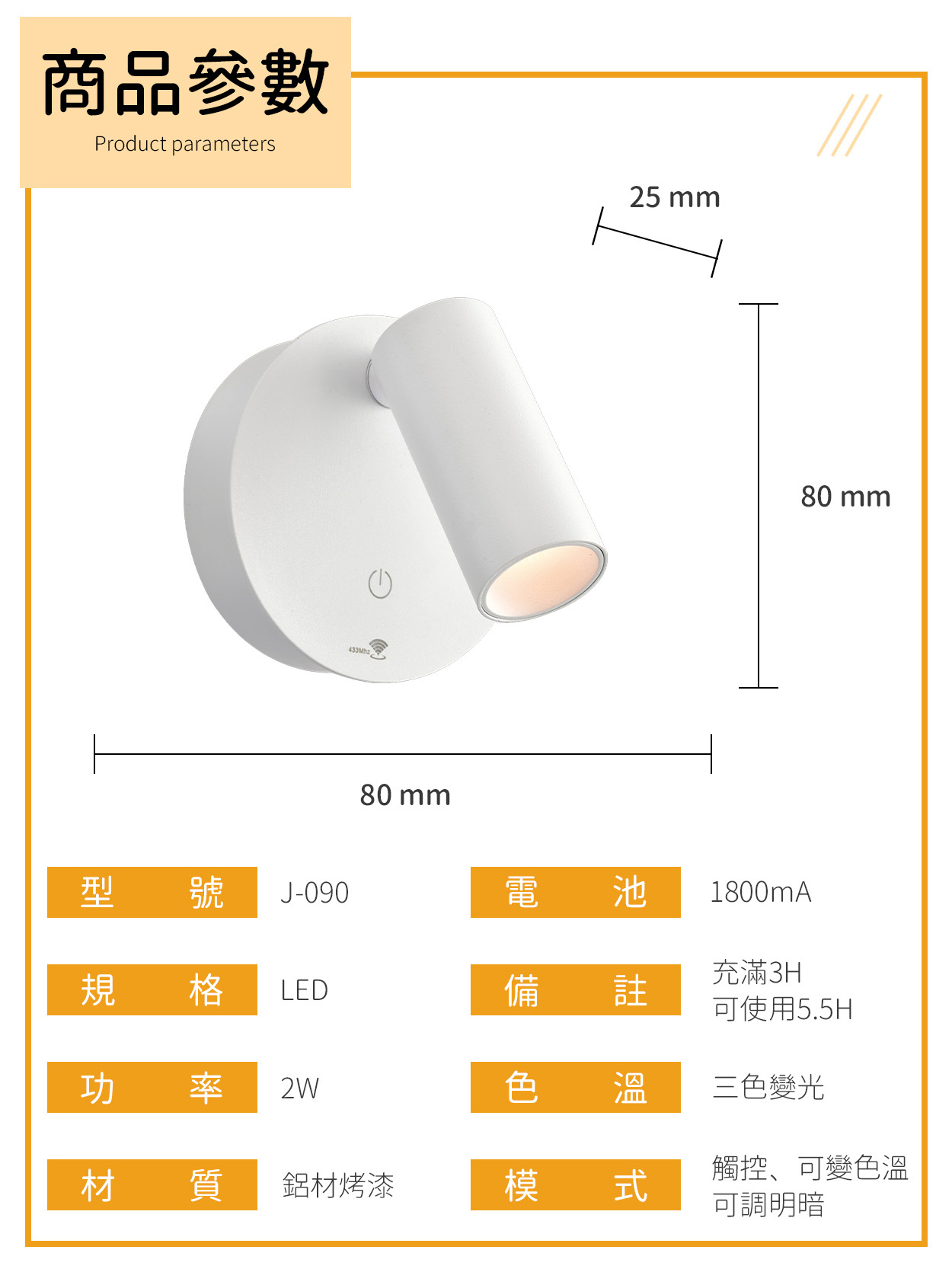 〔色溫〕三色變光、可調明暗