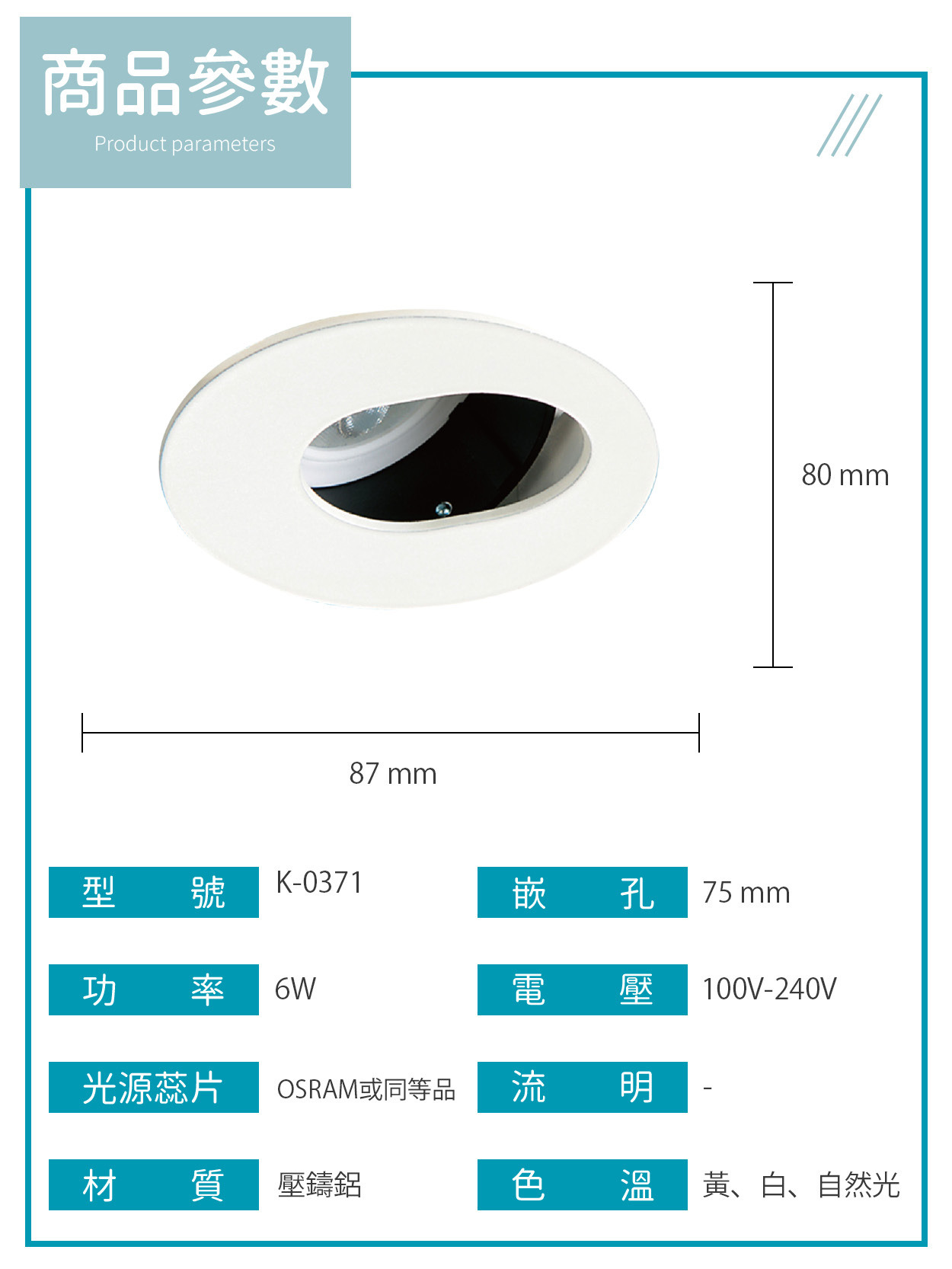 7公分|MR16內凹防眩崁燈 K-0371
