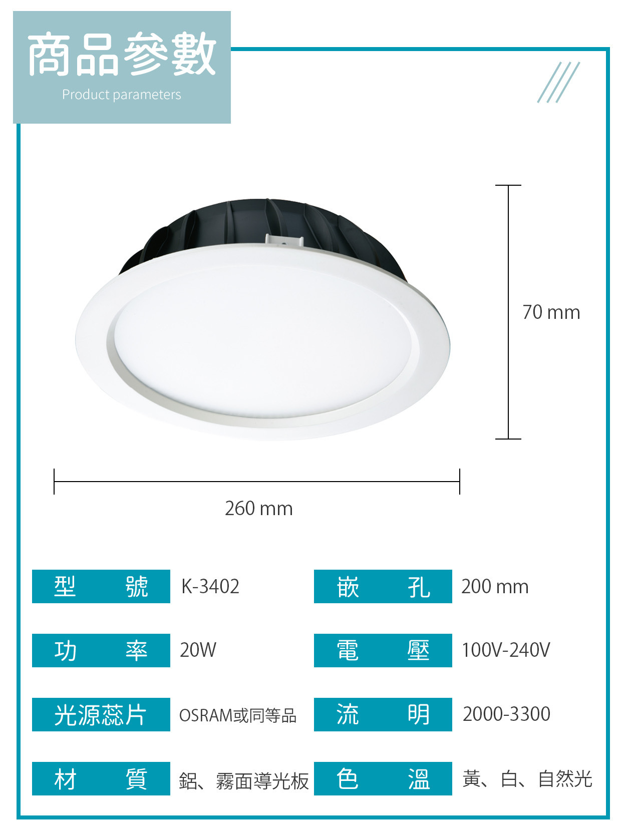 24公分|均光型崁燈(兩種瓦數) K-3402