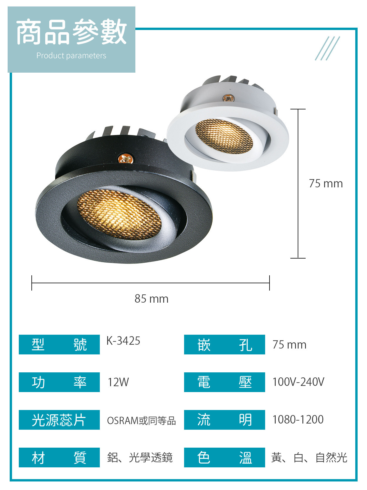 7.5公分|12W蜂巢防眩崁燈 K-3425