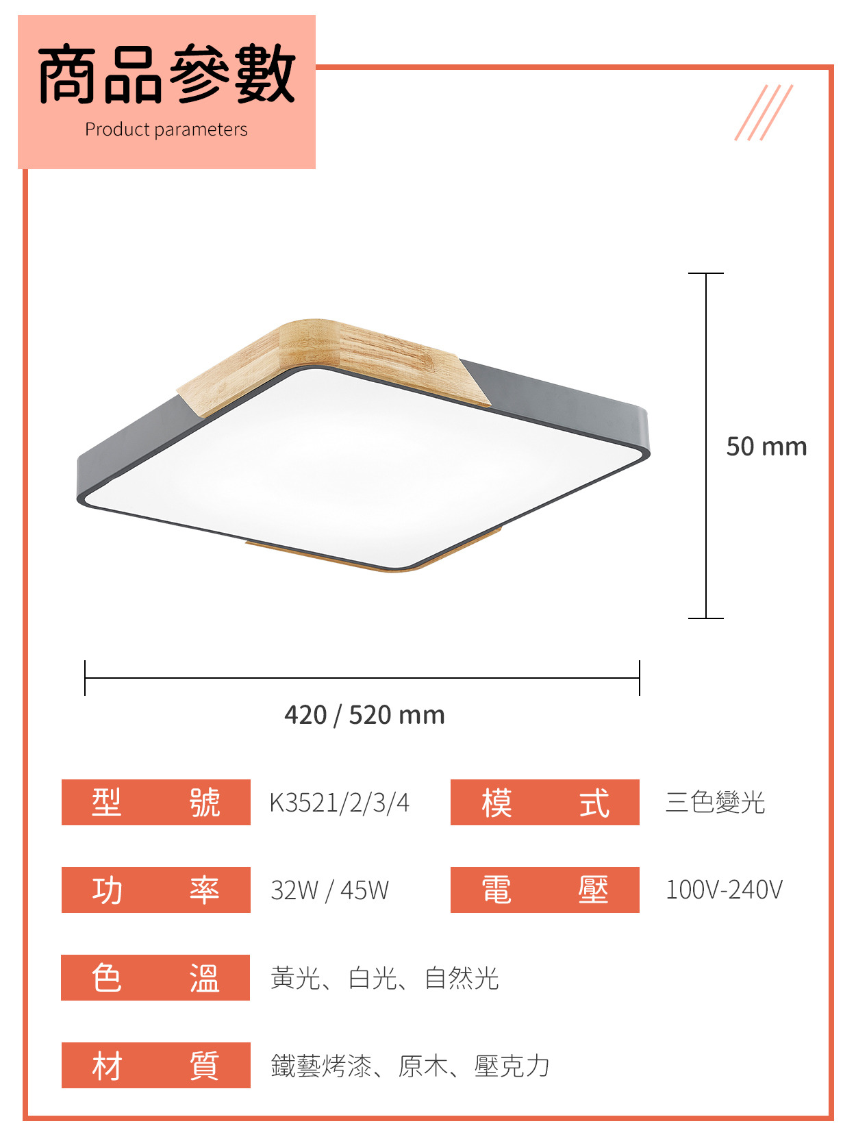 〔45W尺寸〕520x520x50 mm