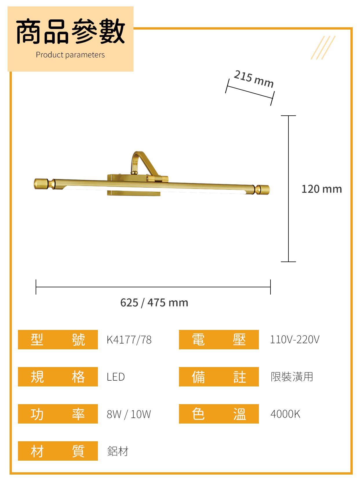 〔10W尺寸〕625x120x215 mm