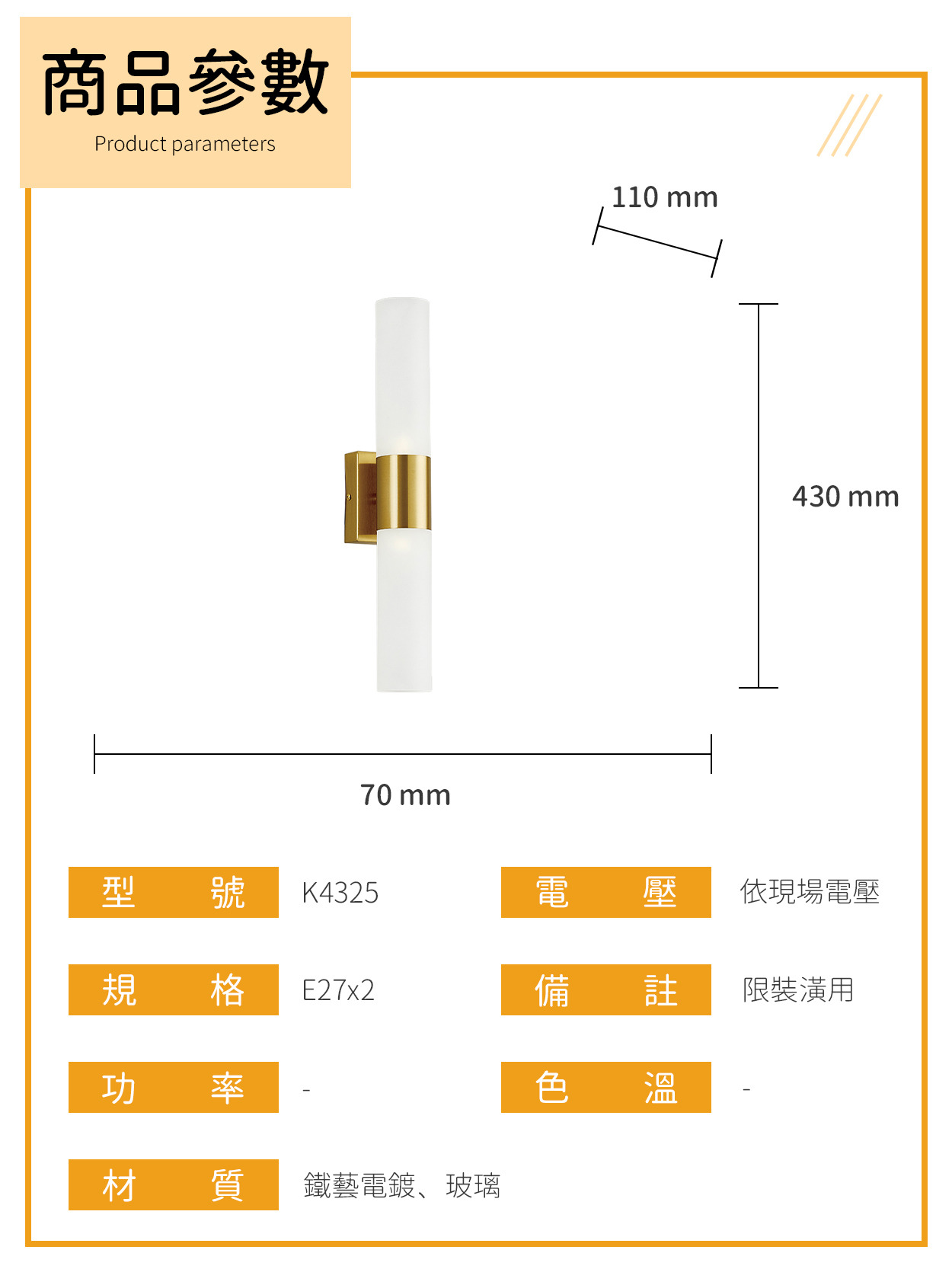 〔尺寸〕W70 H430 D110 mm