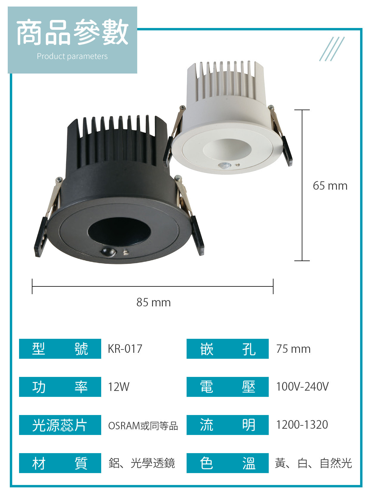 7.5公分|12W防眩感應崁燈 K-017