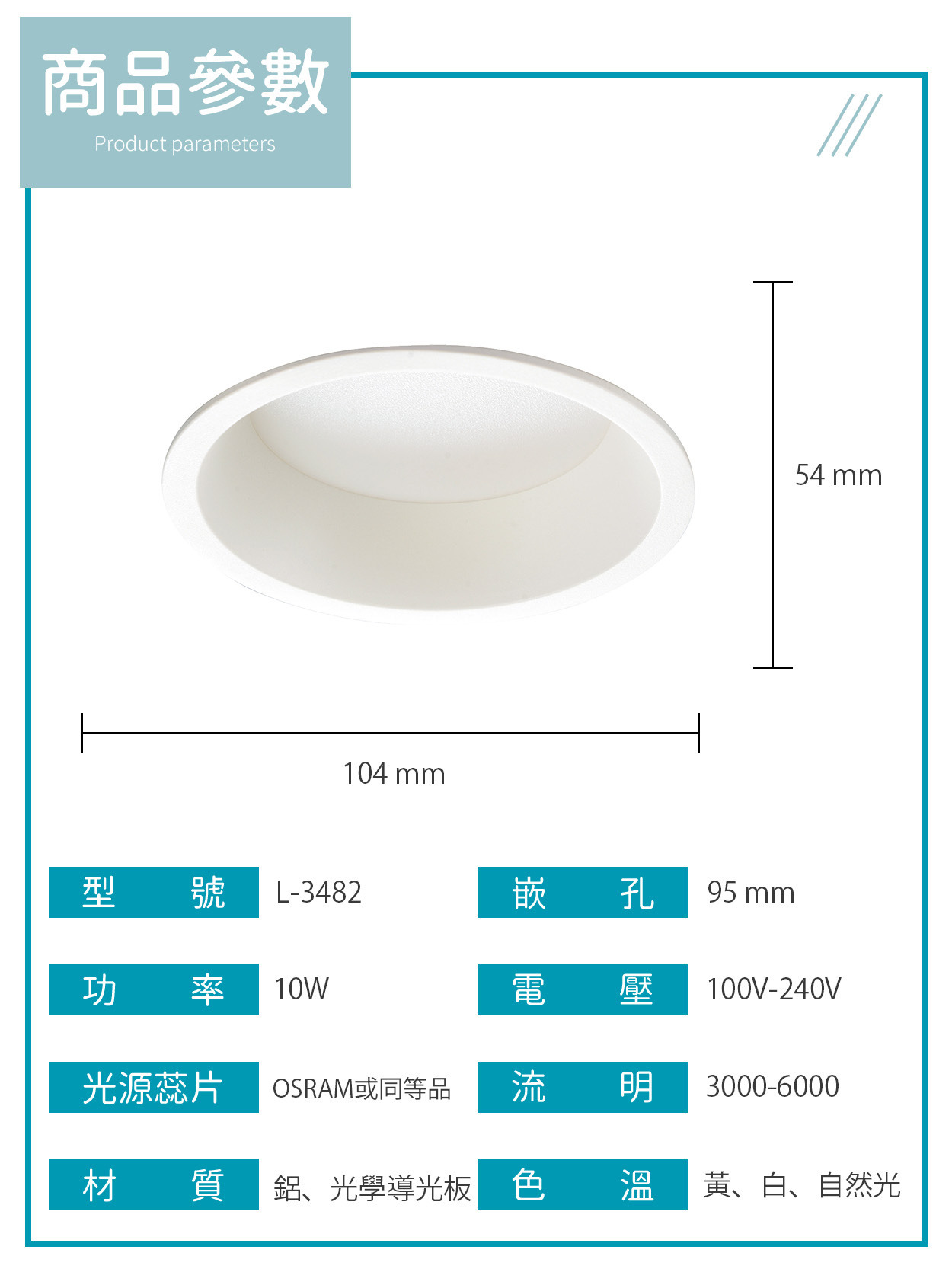 9.5公分|10W內凹防眩窄邊崁燈 L-3482