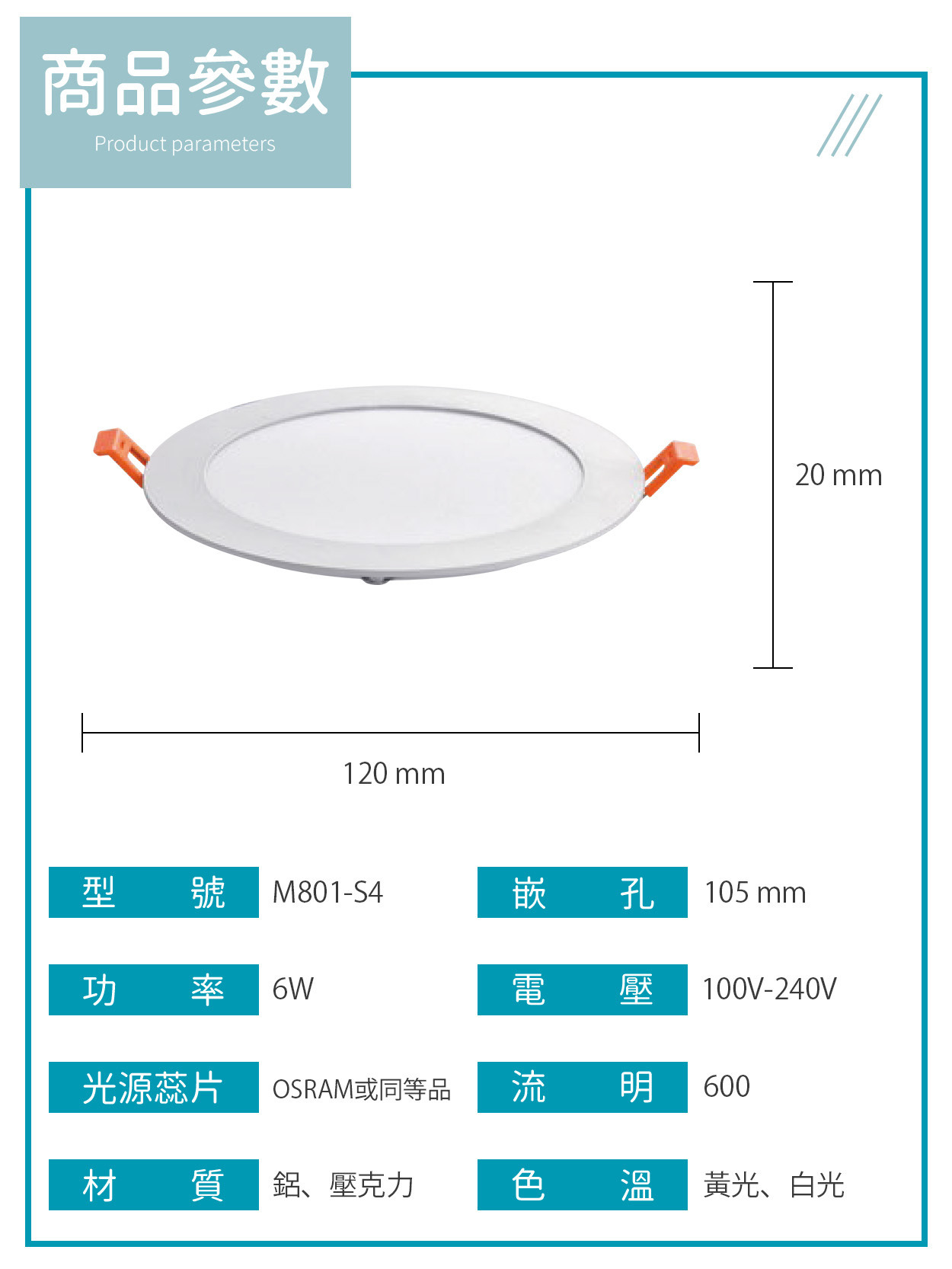 10.5公分|6W超薄型均光崁燈 M801-S4