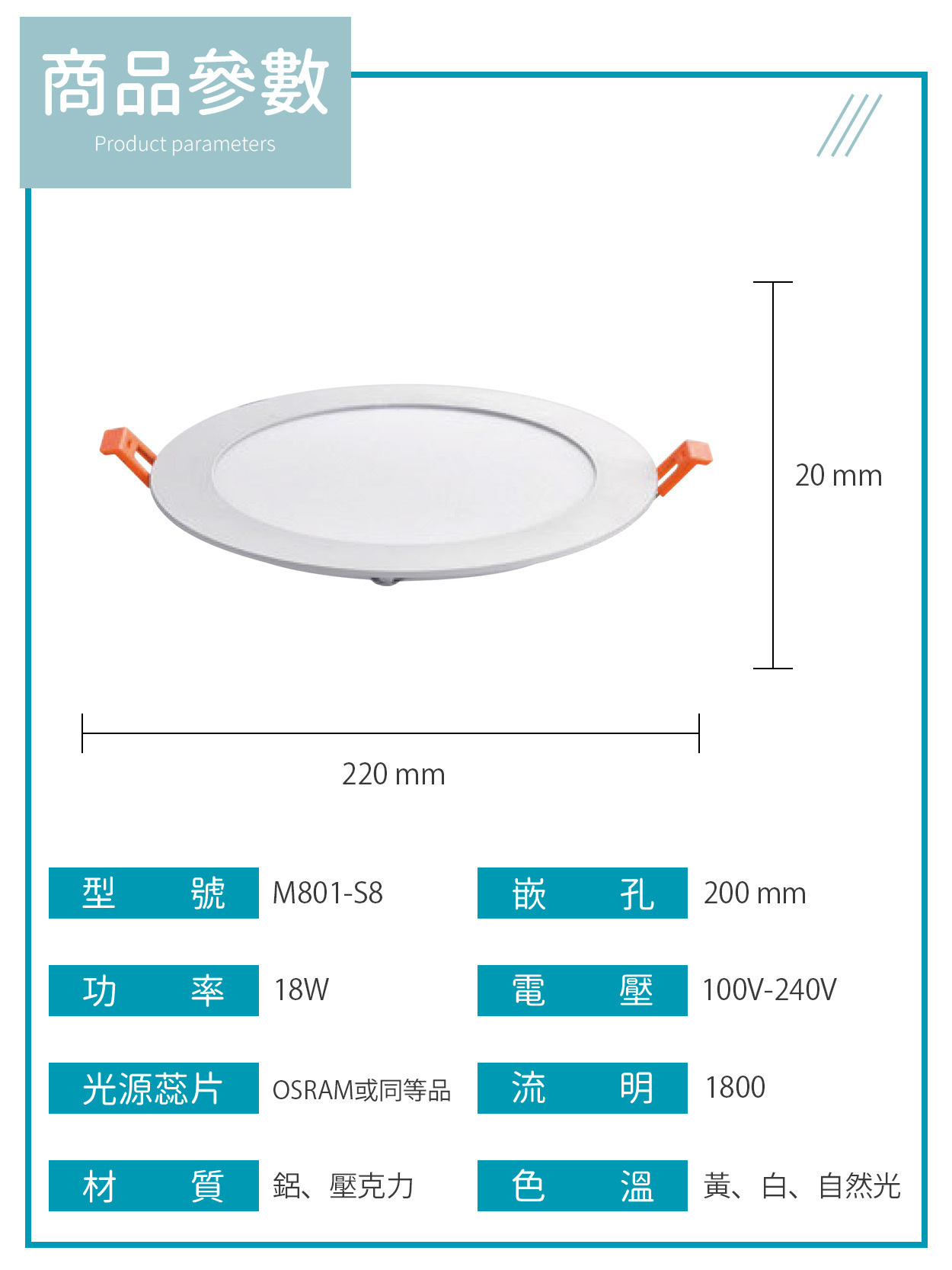20公分|18W薄型均光崁燈 M801-S8