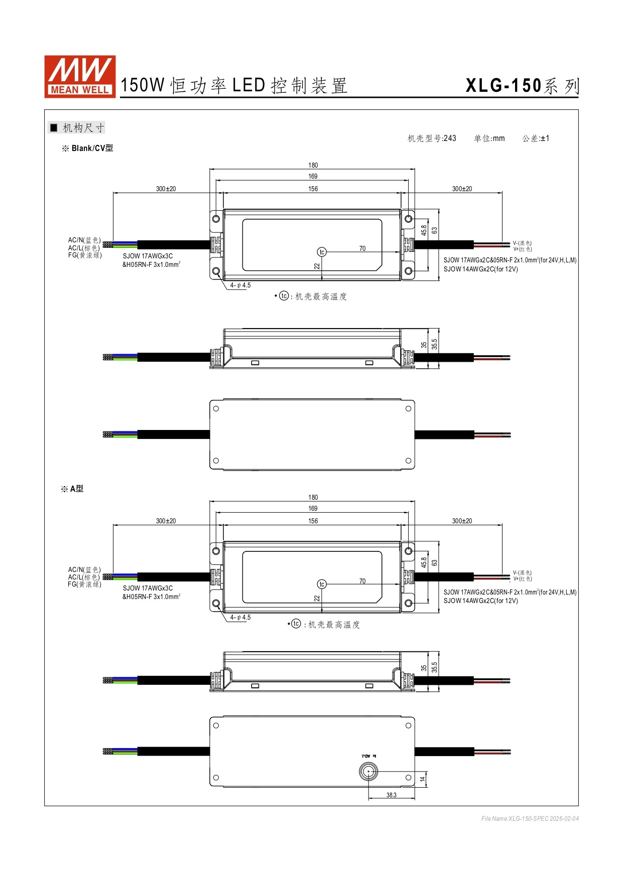 150W|明緯防水安定器 MWS-150