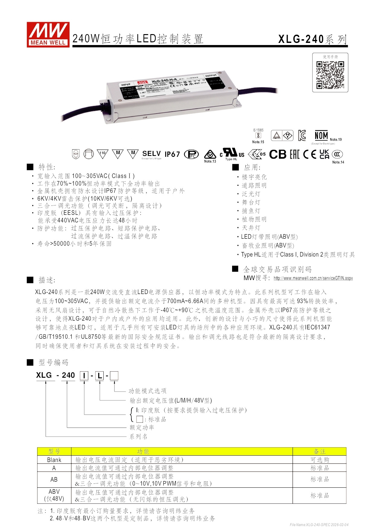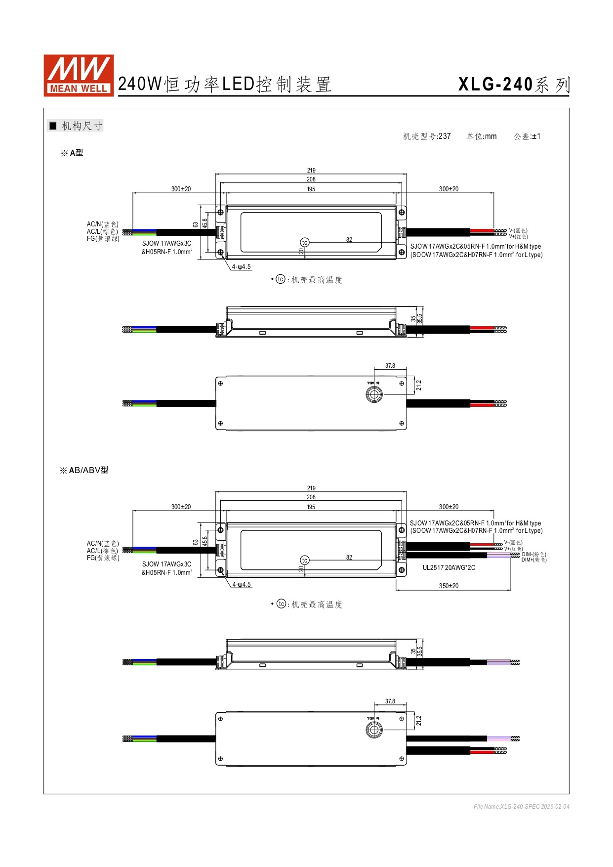 240W|明緯防水安定器 MWS-240