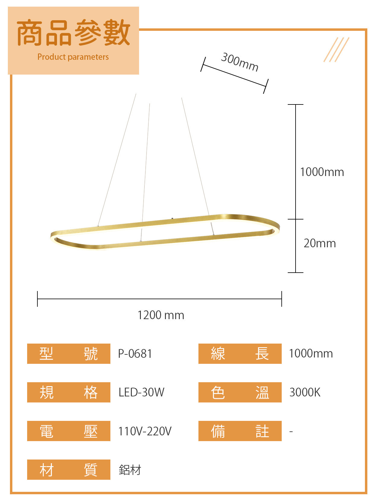 30W|光環橢圓現代餐吊燈 P-0681