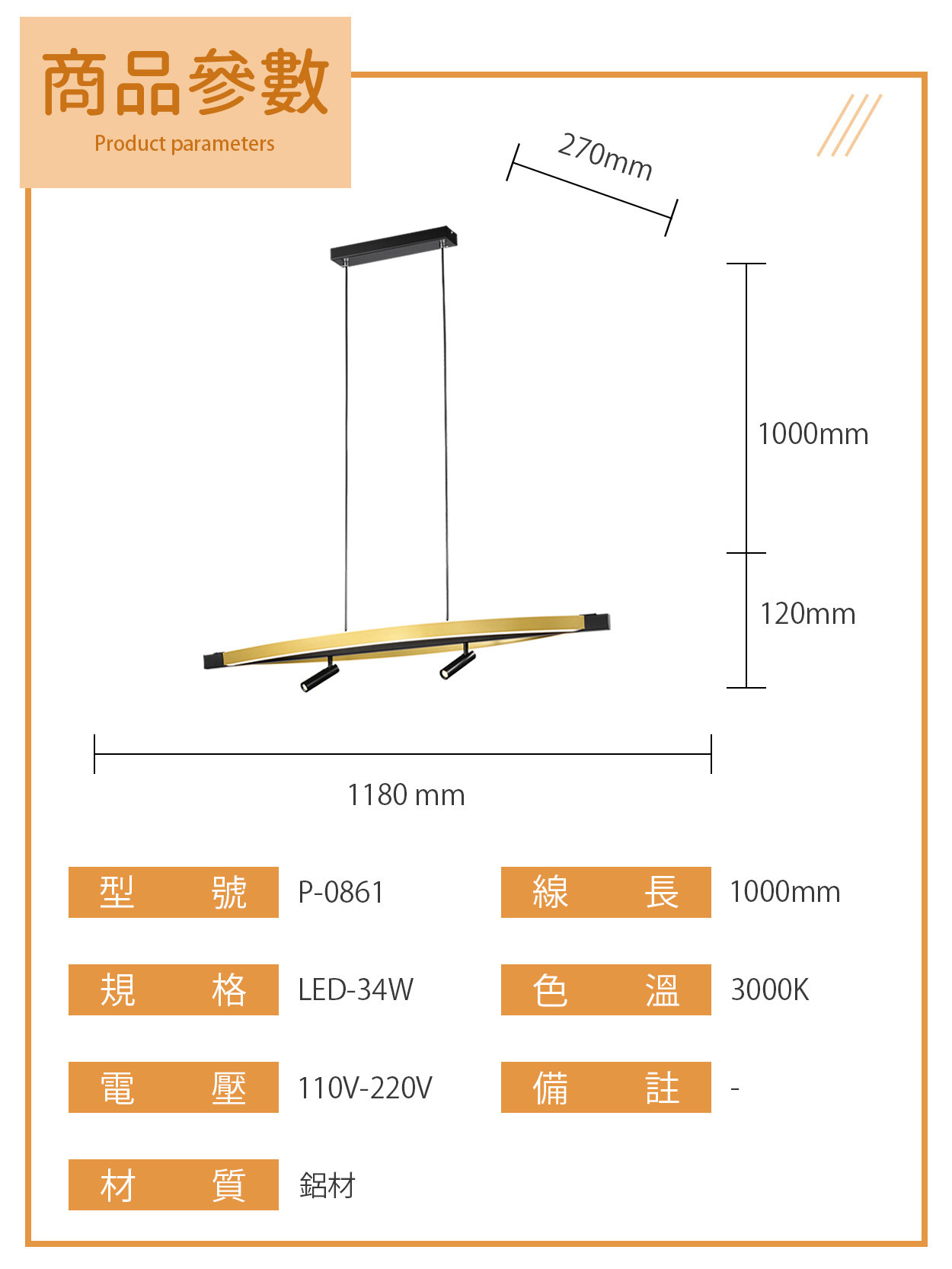 34W|弧映之光現代餐吊燈 P-0861