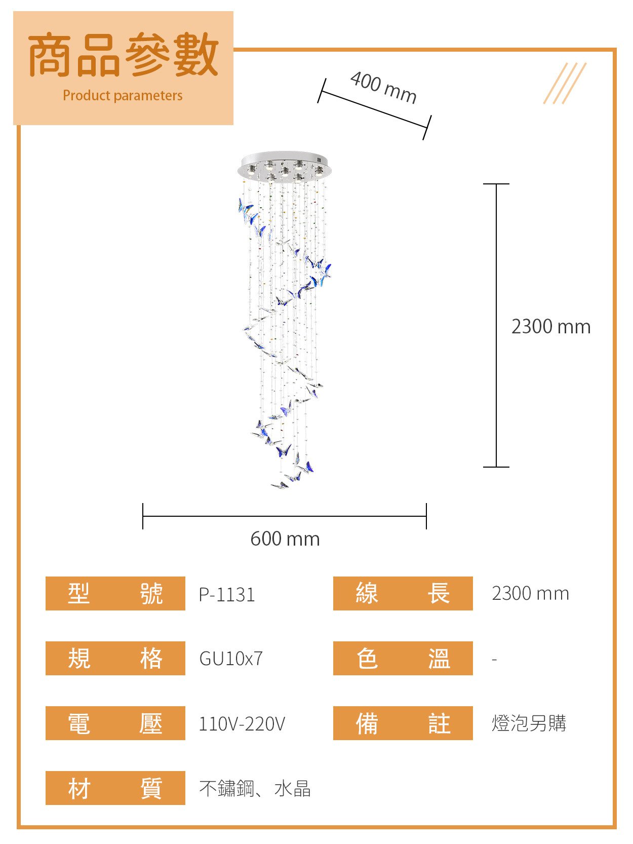 GU10|蝶影之舞水晶垂墜燈 P-1131