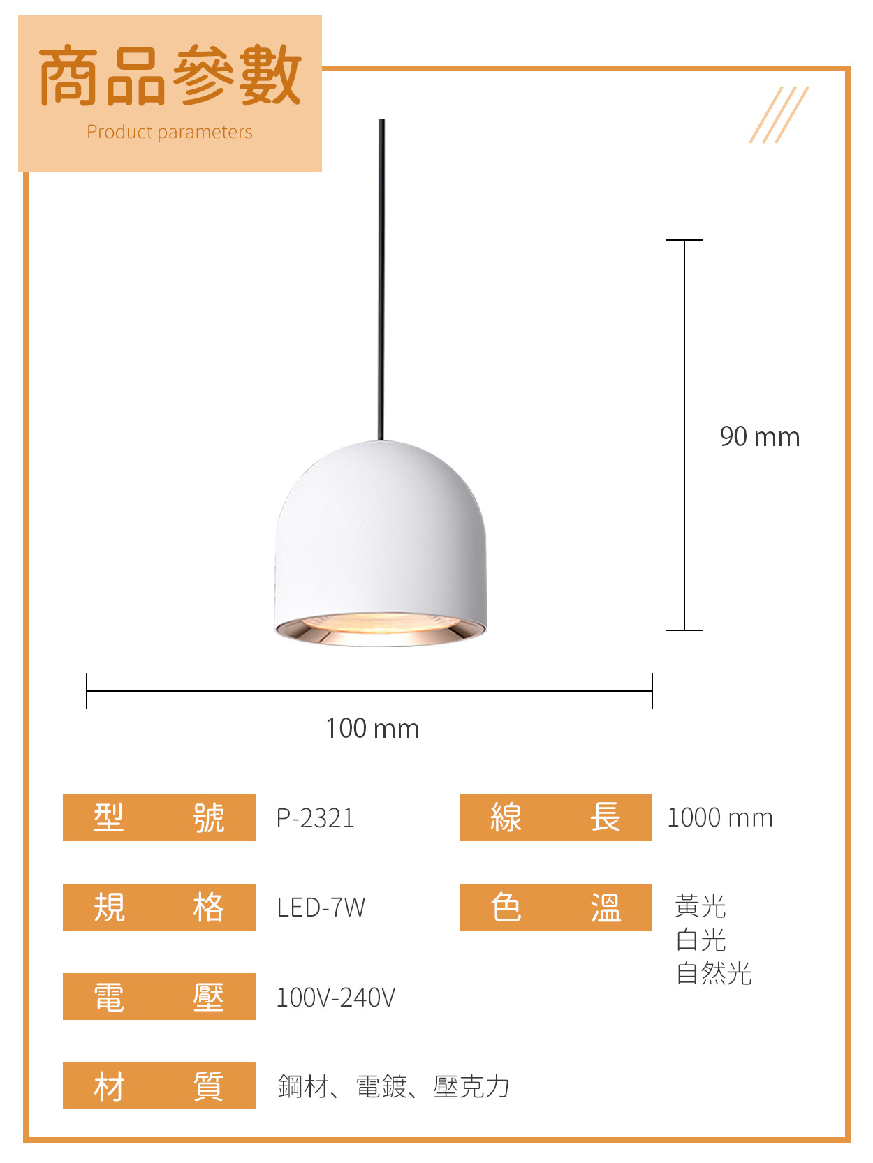 7W|極簡風格三色吊燈 P-232