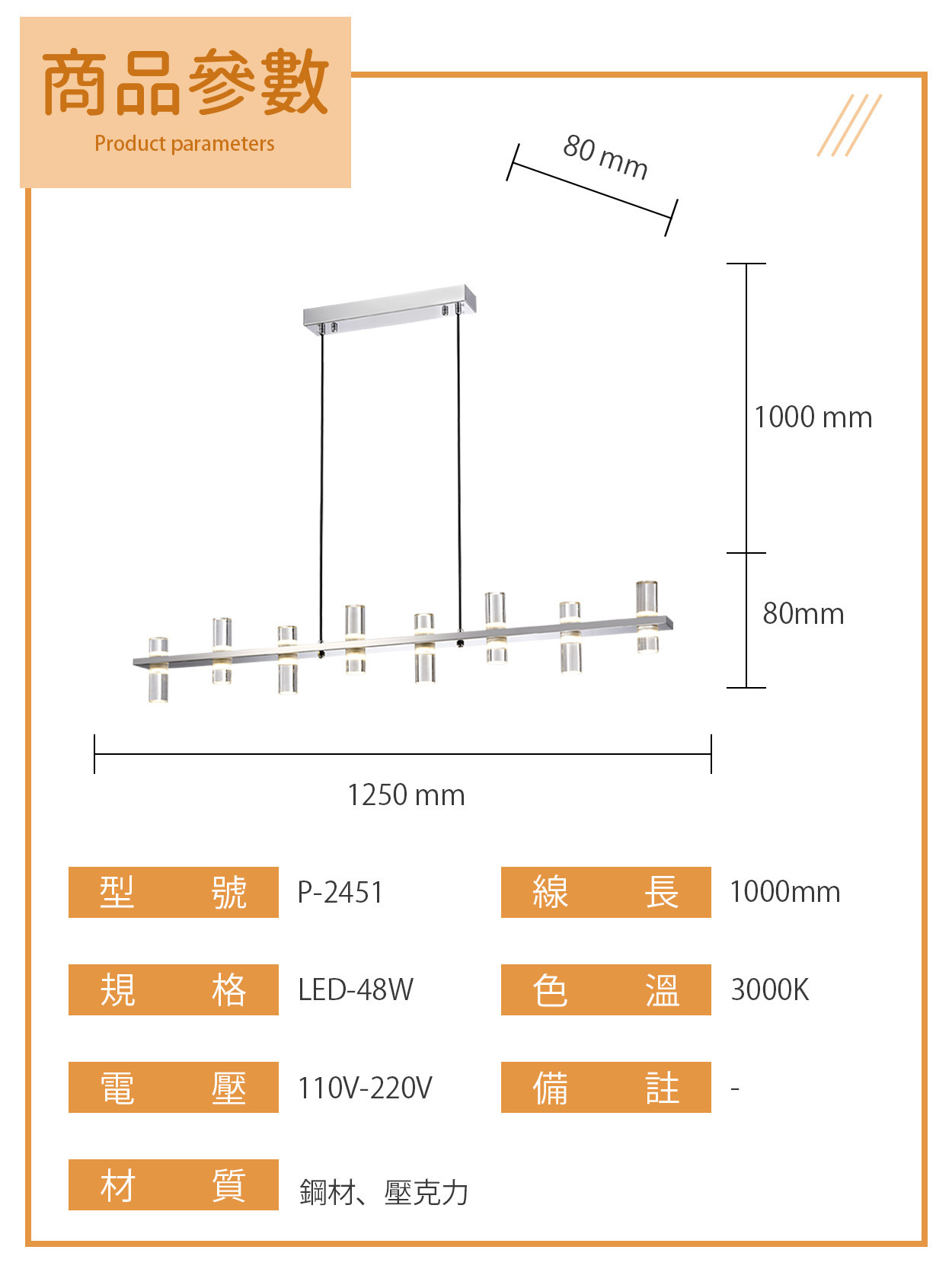 48W|框影之光現代餐吊燈 P-2451