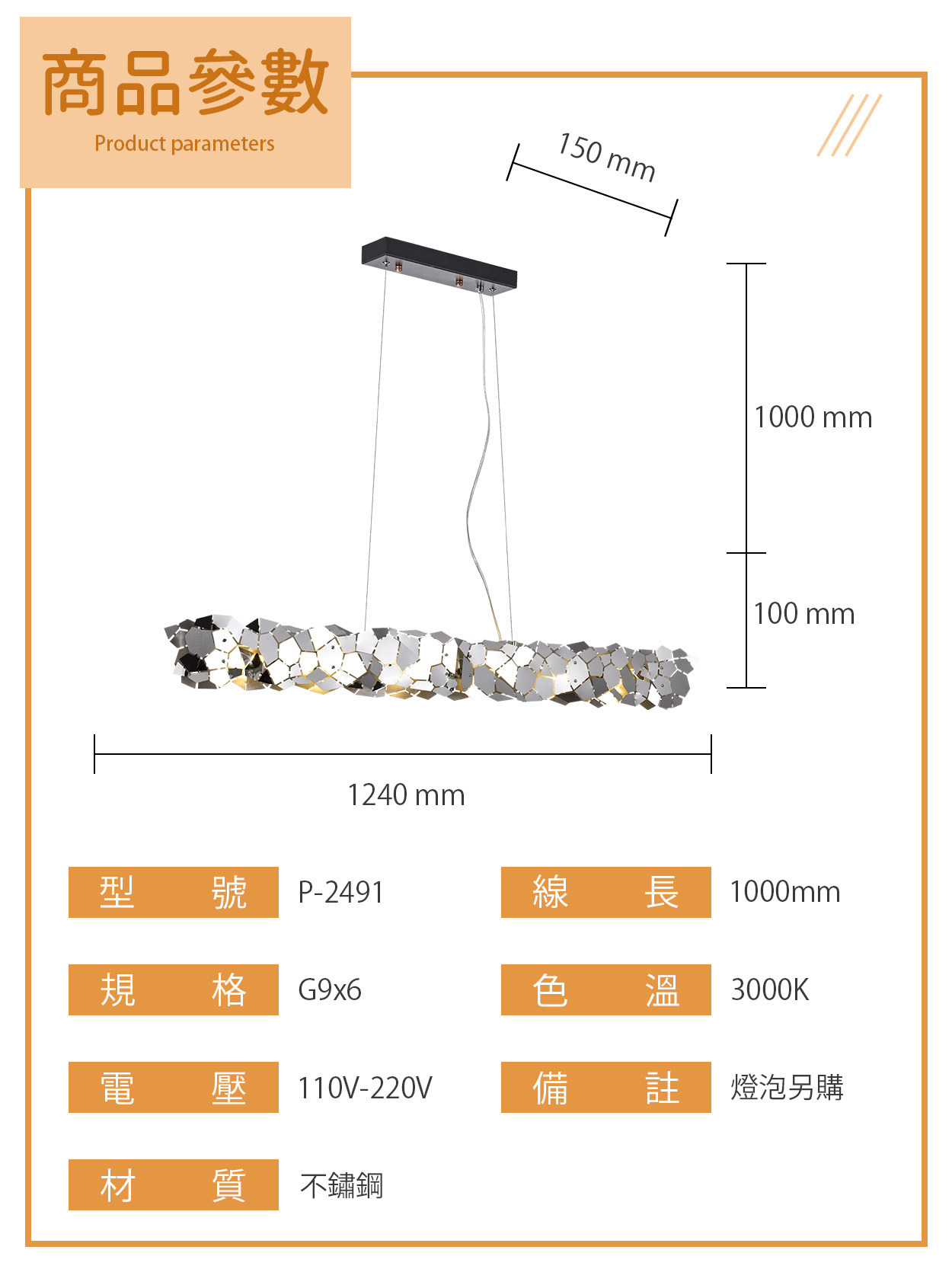 G9|晶映之光現代餐吊燈 P-2491