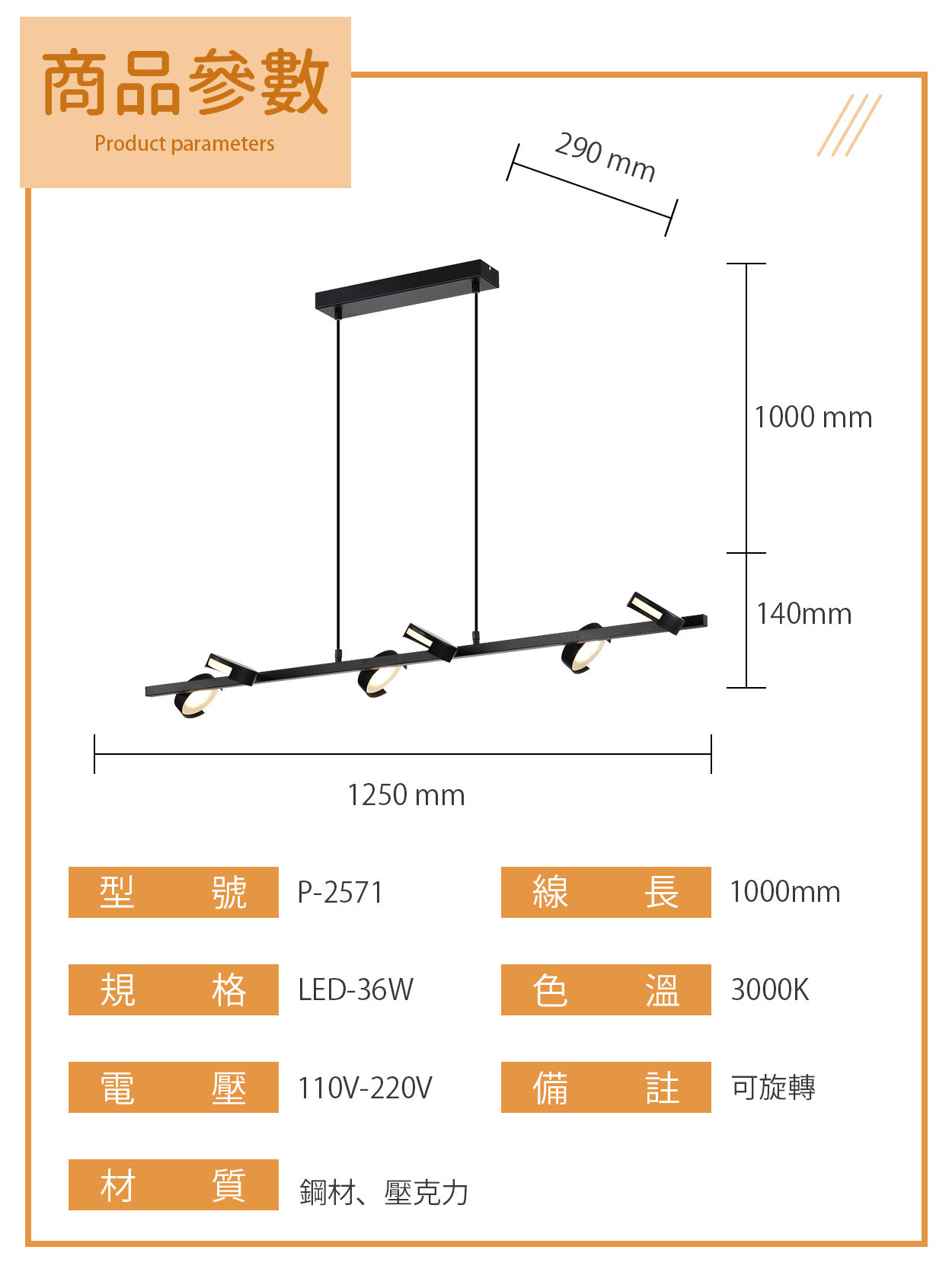 36W|焦點光序現代餐吊燈 P-2571