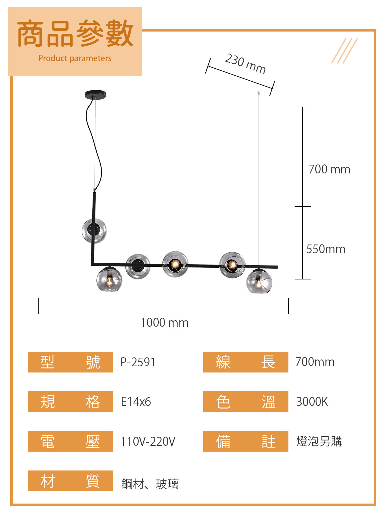E14|焦點光序現代餐吊燈 P-2591