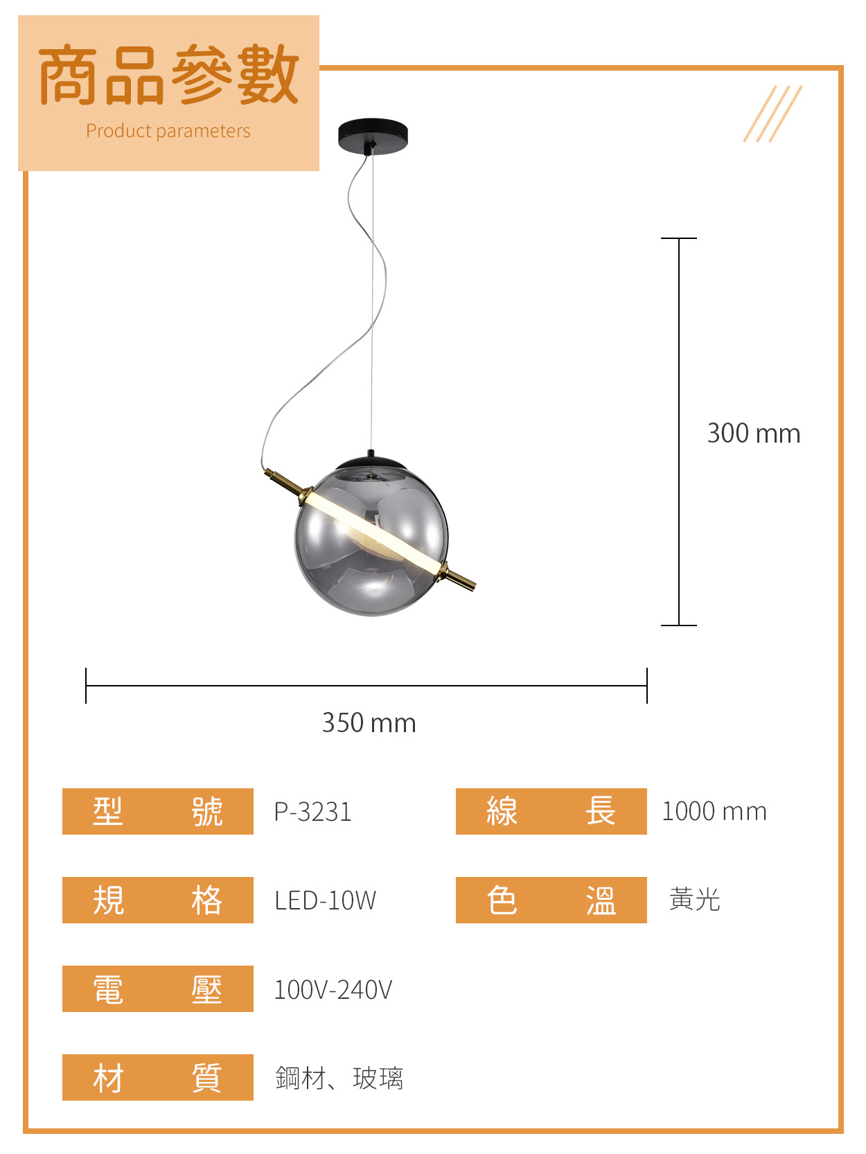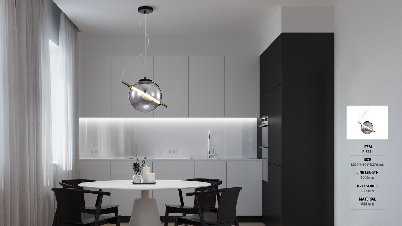10W|現代線性光源玻璃球吊燈 P-323