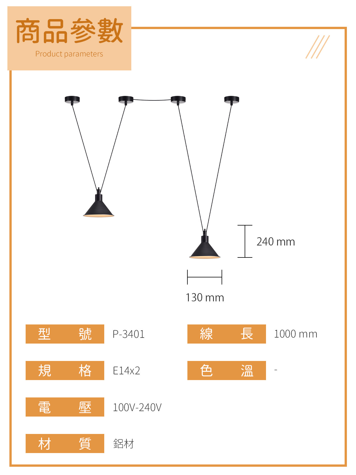 E14|復古設計吊燈 P-3401
