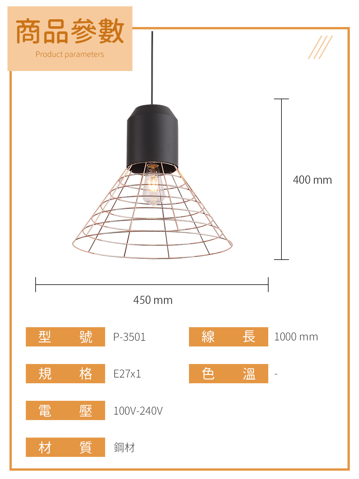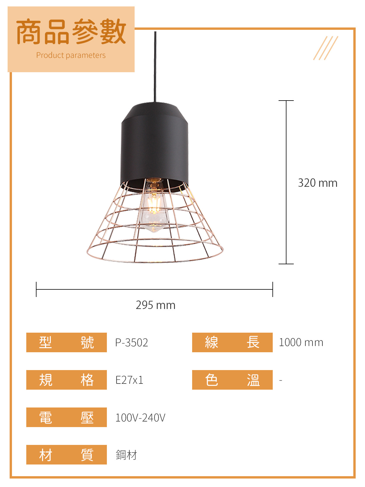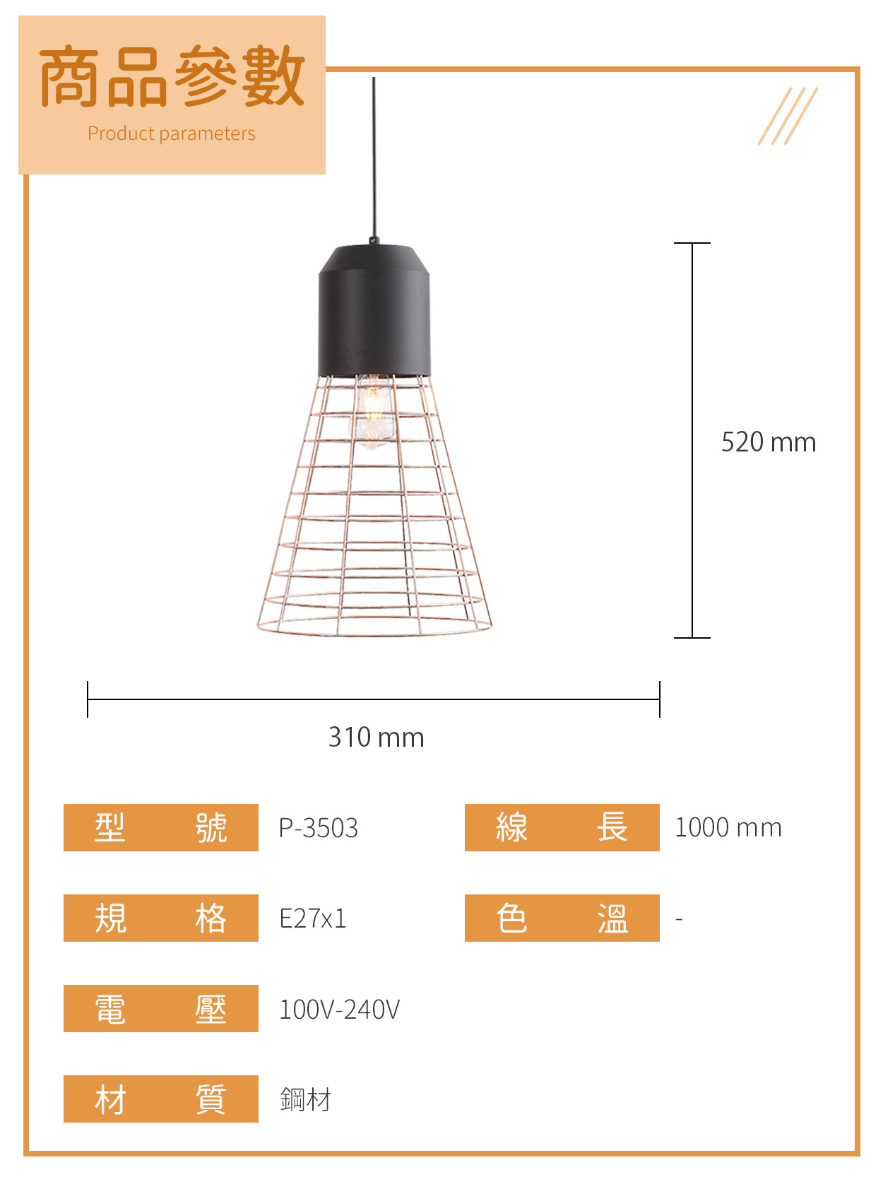 E27|工業風鐵網吊燈系列 P-350