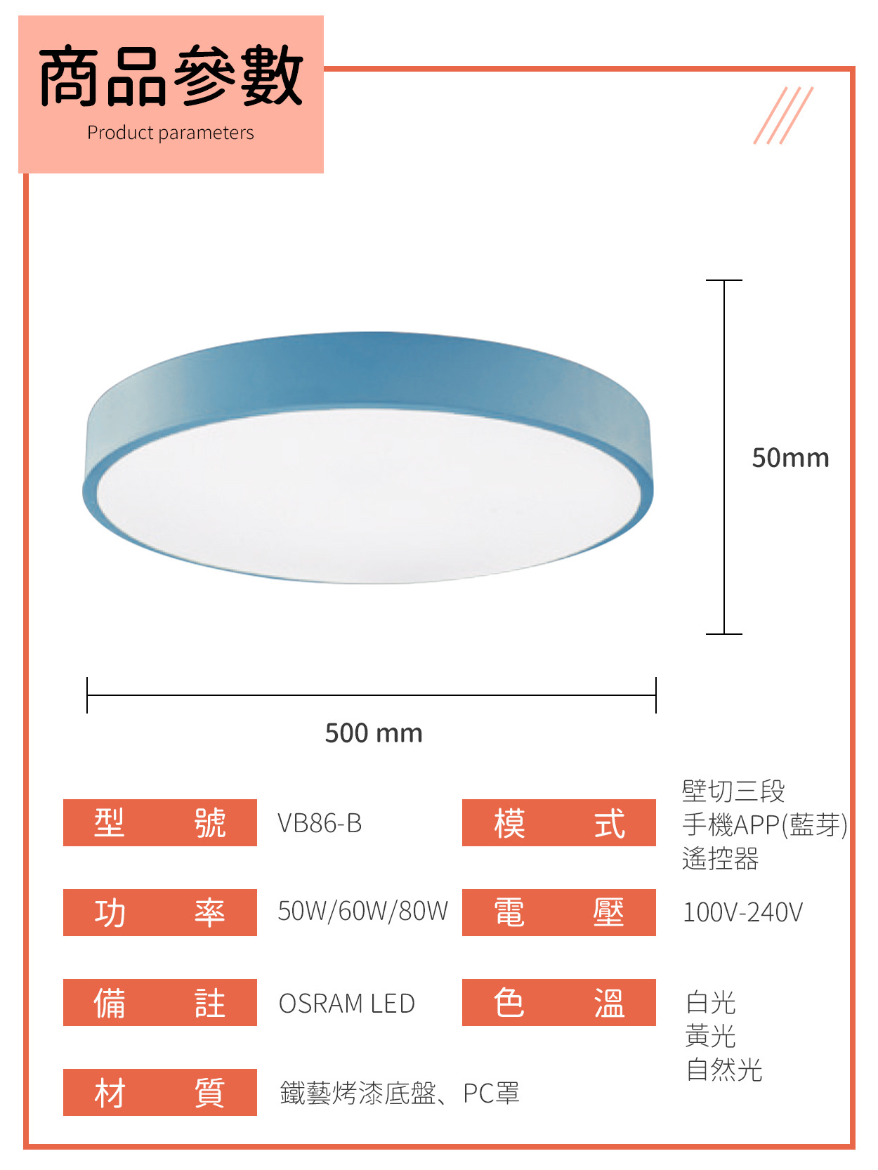〔模式〕三段壁切、手機APP調光調色、遙控器